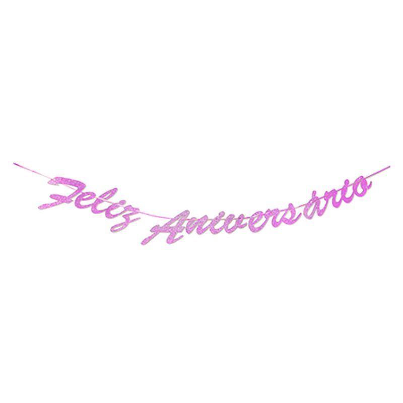 Conteúdo da embalagem: 1 unidade da Faixa Feliz Aniversário Rosa com Glitter