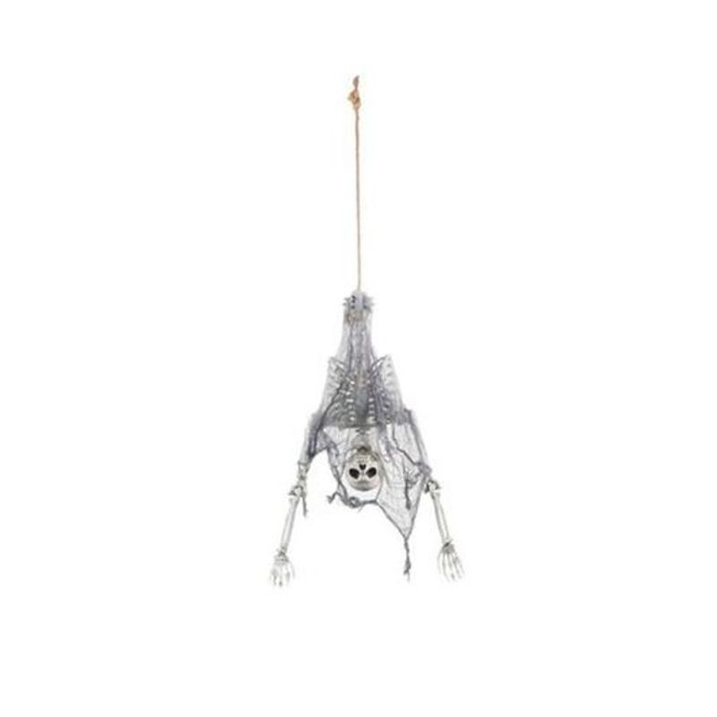 O Fantasma Esqueleto Pendurado de Ponta Cabeça é uma decoração de Halloween assustadora e divertida. Com um tamanho de 1,50 metros, ele irá surpreender seus convidados e criar uma atmosfera misteriosa em sua festa. Feito de plástico e tecido resistente, este fantasma esqueleto é durável e feito para durar. Seu design pendurado de ponta cabeça adiciona um toque único e macabro à decoração.