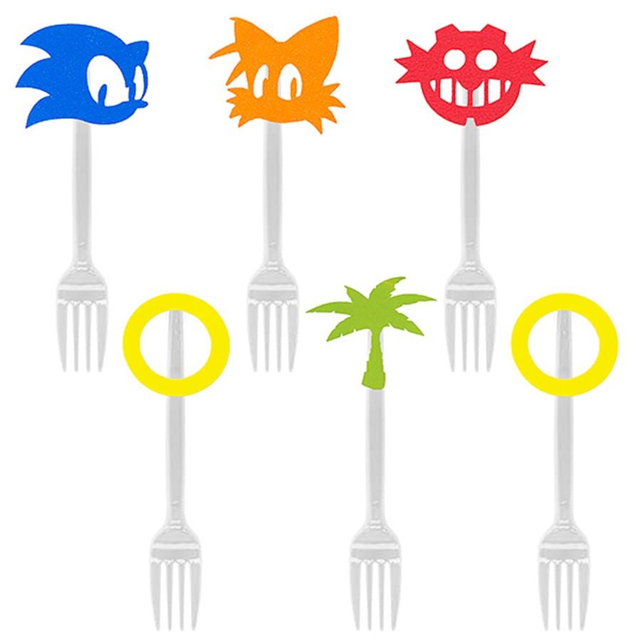 Utilize o Garfo para Sobremesa com Aplique Sonic para servir bolos, tortas e outras sobremesas temáticas em sua festa.