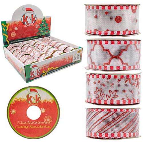 Fita Para Decoração Natalina Luxo 3,8cmx2,00 Metros Sortido - 1 Rolo
