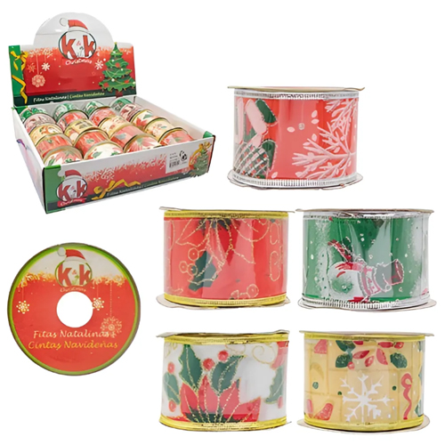Fita Para Decoração Natalina Luxo 5,0cmx2,00 Metros Modelos Variadas - 1 Rolo