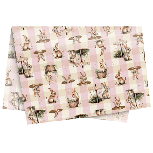Papel seda rosa com estampa temática de Páscoa, trazendo um toque delicado.