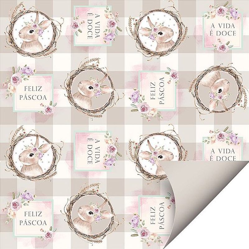 Utilize a Folha Páscoa Double Face Coelha Serena Bege para embalar ovos de Páscoa artesanais e presentes temáticos.