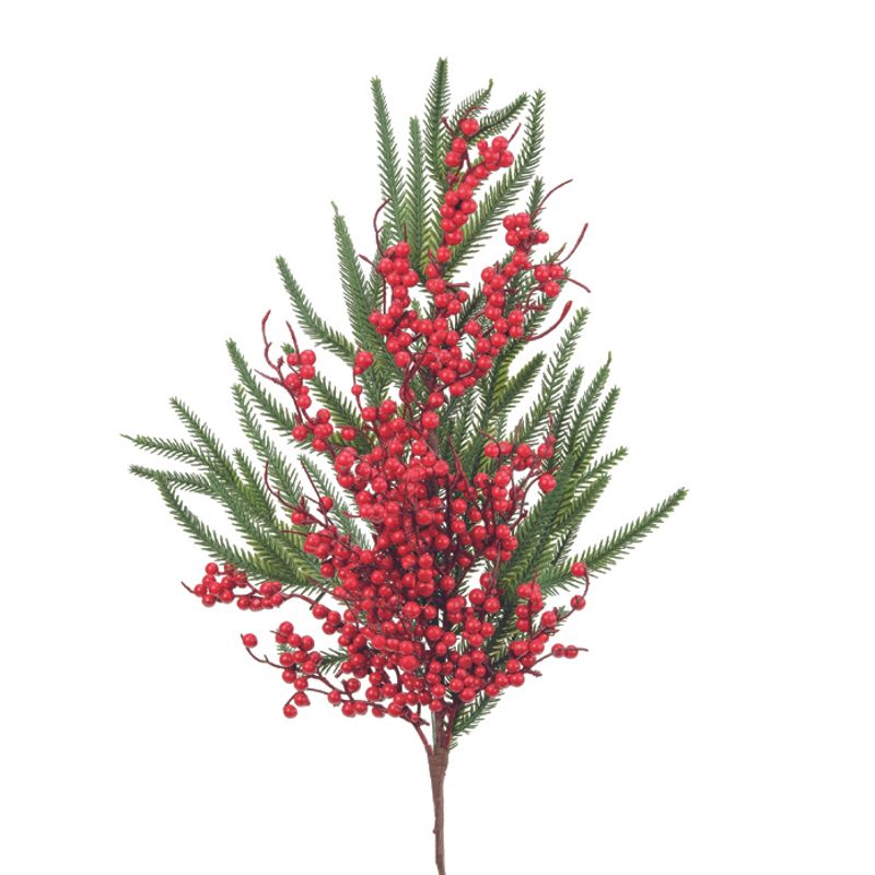 Nome: Galho Grande com Folhas Frutas Verde Vermelho 77cm - 1 Un - Cromus