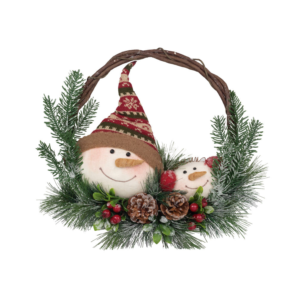 Enfeite sua casa, comércio ou festa de Natal com a delicadeza da Guirlanda Rattan Bonecos Neve de 35cm. Confeccionada com materiais de qualidade, como plástico, rattan, isopor, poliéster e metal, essa guirlanda é sinônimo de durabilidade e resistência.