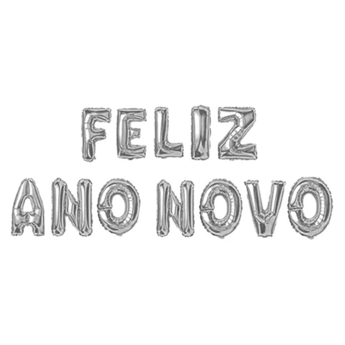 Kit Balão Metalizado Feliz Ano Novo Prata 16" 32cm