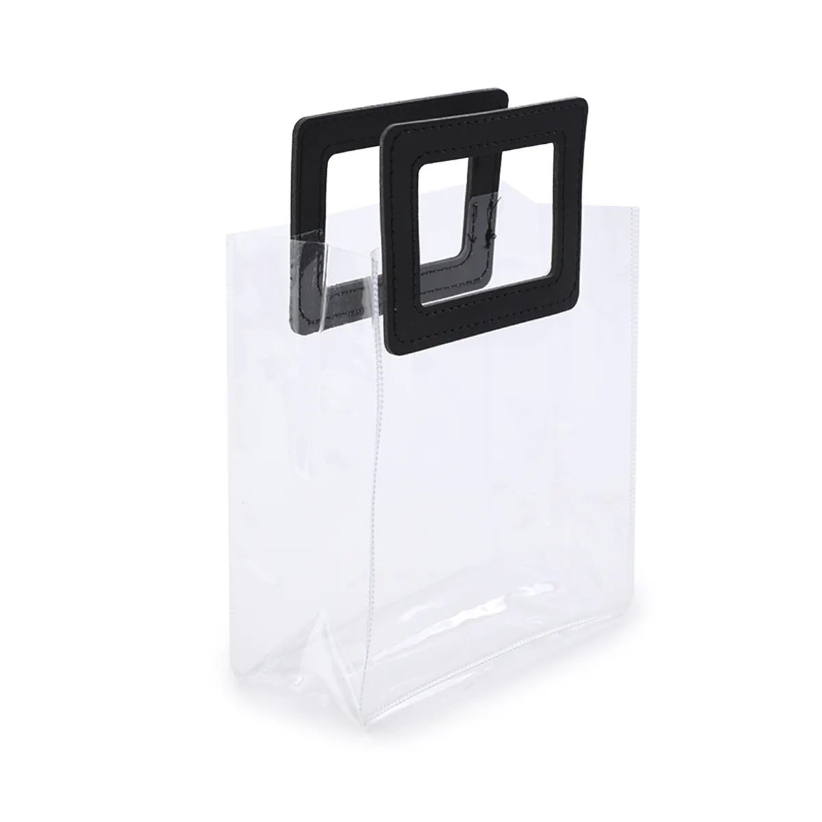 A Kit Sacola PVC Alça Retangular Transparente e Preta na dimensão 16,4x14,2x7,3 cm é uma opção prática e estilosa para embalar presentes, produtos e acessórios. O design transparente permite que o conteúdo fique visível, enquanto a alça preta adiciona um toque de sofisticação.