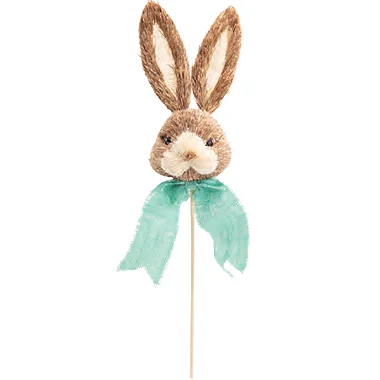 Um adorável pick de cabeça de coelho com um laço, que traz um toque especial às decorações.