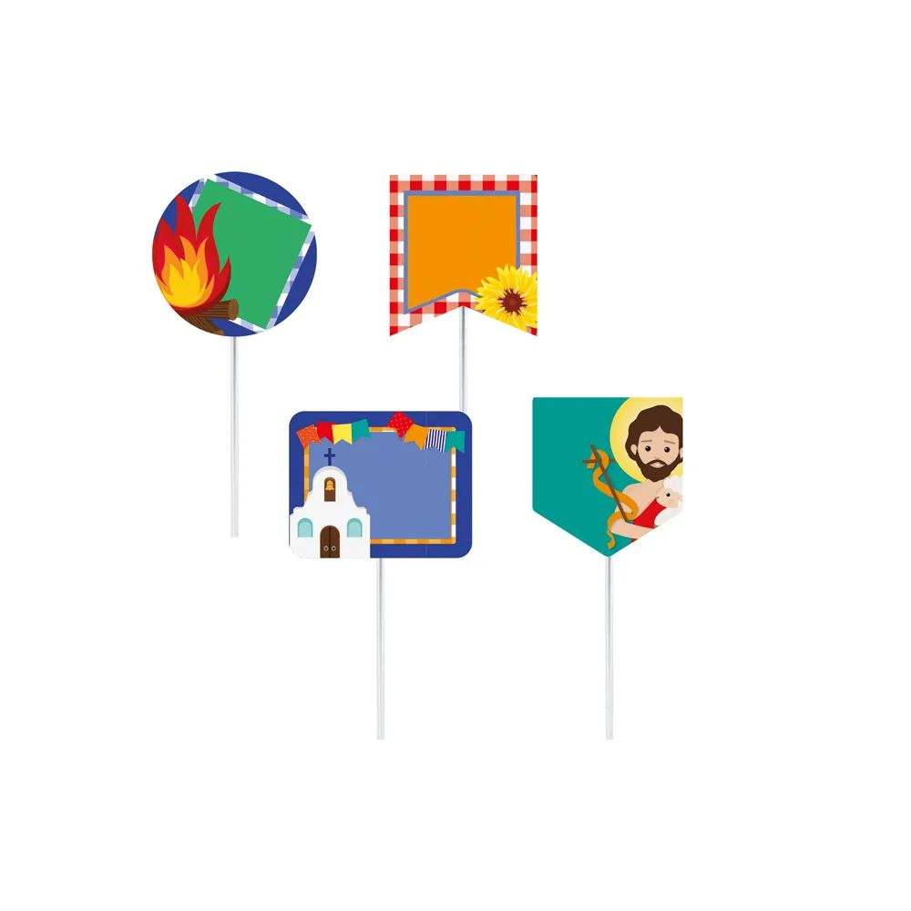 Com medidas aproximadas de 15cm de altura e 6.5cm de largura, cada pacote contém 8 unidades de plaquinhas. Ideais para decorar mesas, paredes e ambientes diversos, as plaquinhas para personalização Noite de São João da Cromus garantem uma festa temática inesquecível.