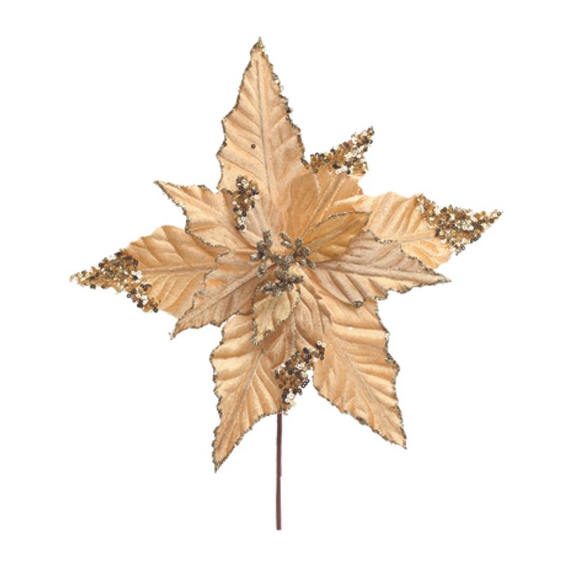Nome: Poinsétia com Paetê Ouro 30cm - 1 Un