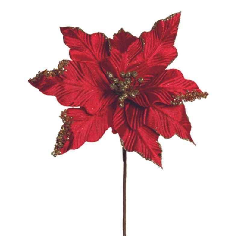 A Poinsetia Vermelho Ouro é uma linda flor decorativa que traz um toque de charme e requinte para qualquer ambiente. Produzida com materiais de alta qualidade, possui um cabo médio de 35cm de altura, o que a torna perfeita para ser utilizada em arranjos florais e enfeites de Natal.