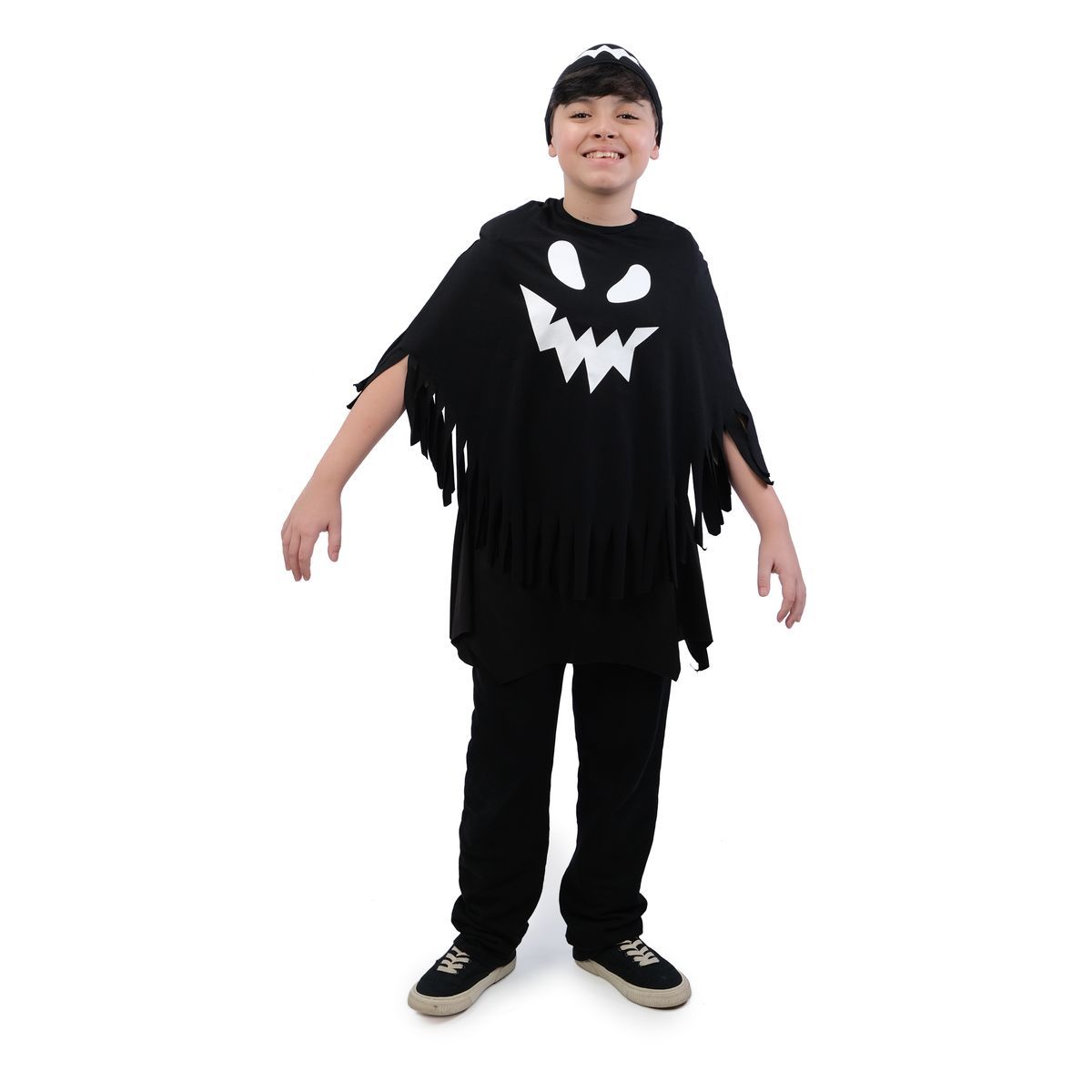 O Poncho Com Gorro Assustador Halloween da Cromus é perfeito para quem deseja arrasar nas festas temáticas. Com um design assustador e único, este poncho é ideal para compor um visual aterrorizante no Halloween. Feito com material de alta qualidade, 100% poliéster, o poncho é resistente e durável. Além disso, o gorro incorporado adiciona um toque especial ao look, completando a fantasia de forma criativa.