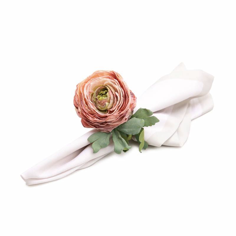 Adicione elegância e charme à sua mesa com o Porta Guardanapo Ranúnculo Rosa e Verde da Cromus.