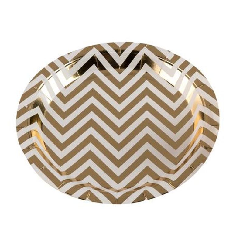 Experimente servir pratos frios ou pequenas porções de sobremesas nos Pratos de Papel Missoni Dourado.
