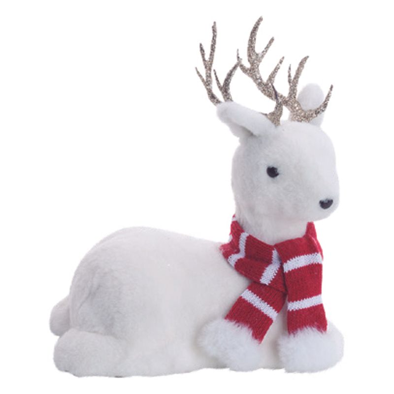 Decoração de Natal: A Rena Deitada Glitter Cachecol Branco Vermelho é perfeita para compor a decoração da sua casa, escritório, loja ou qualquer outro ambiente durante o Natal.