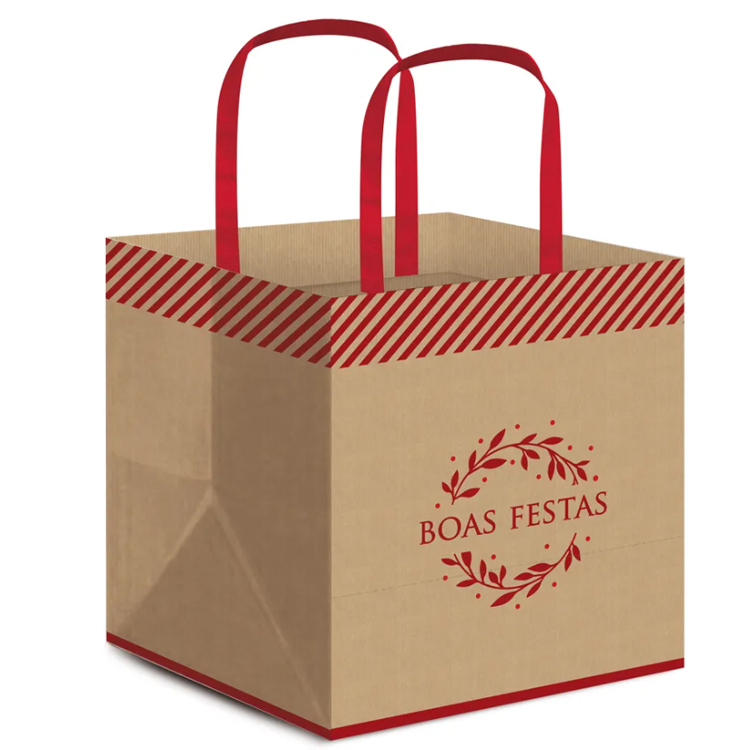 Sacola Para Panetone Boas Festas 27,5x22x16cm Vermelho - 10 Un