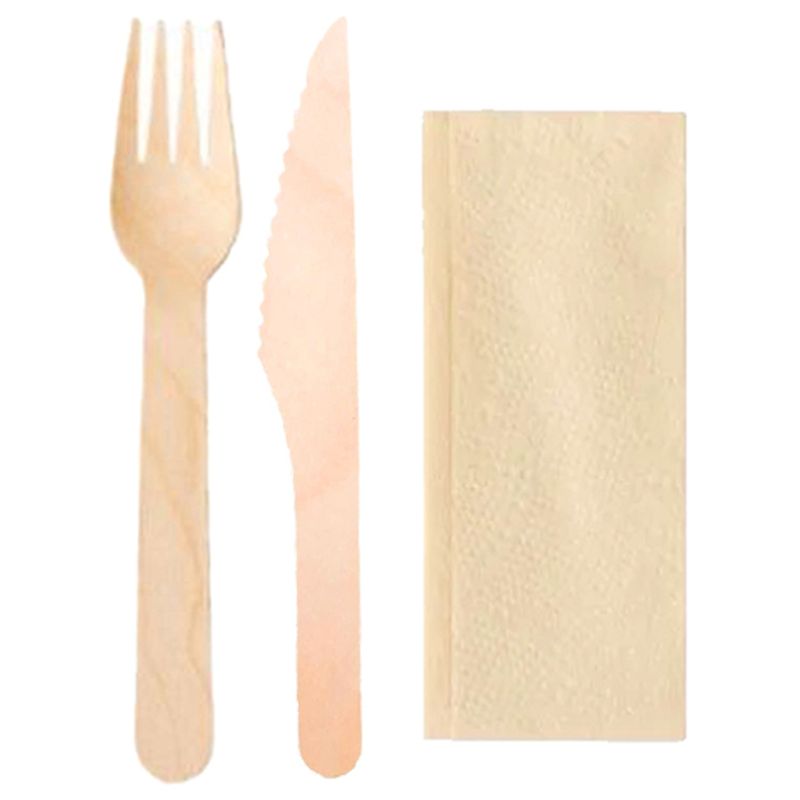 O Kit de Talher de Madeira Natural com Garfo, Faca de 16cm e Guardanapo traz praticidade e elegância para suas refeições!