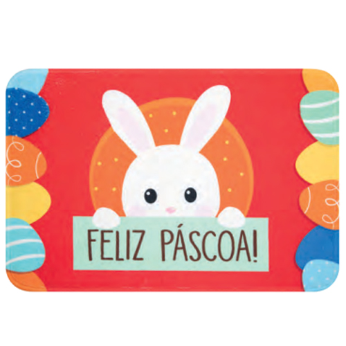 O Tapete Coelho Feliz Páscoa Branco/Vermelho é a escolha perfeita para dar boas-vindas à Páscoa, tornando seu lar mais alegre e convidativo!