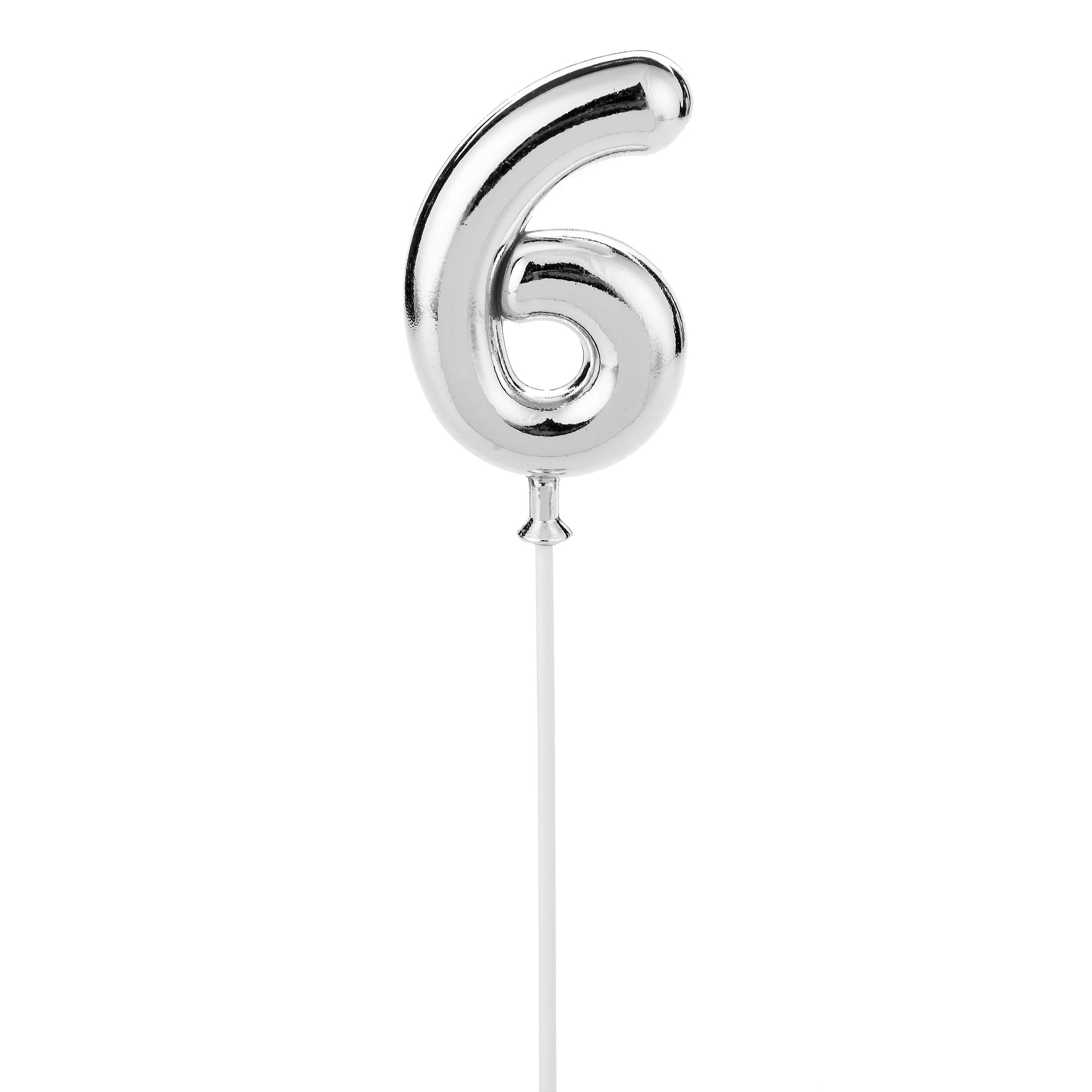 O topo de bolo prateado número 6 é perfeito para enfeitar o bolo da sua próxima festa de forma sofisticada e elegante. Com altura de 23,5 cm, largura de 5 cm e comprimento de 2 cm, este produto é produzido pela Silver Plastic, empresa especializada em utensílios plásticos de alta qualidade.