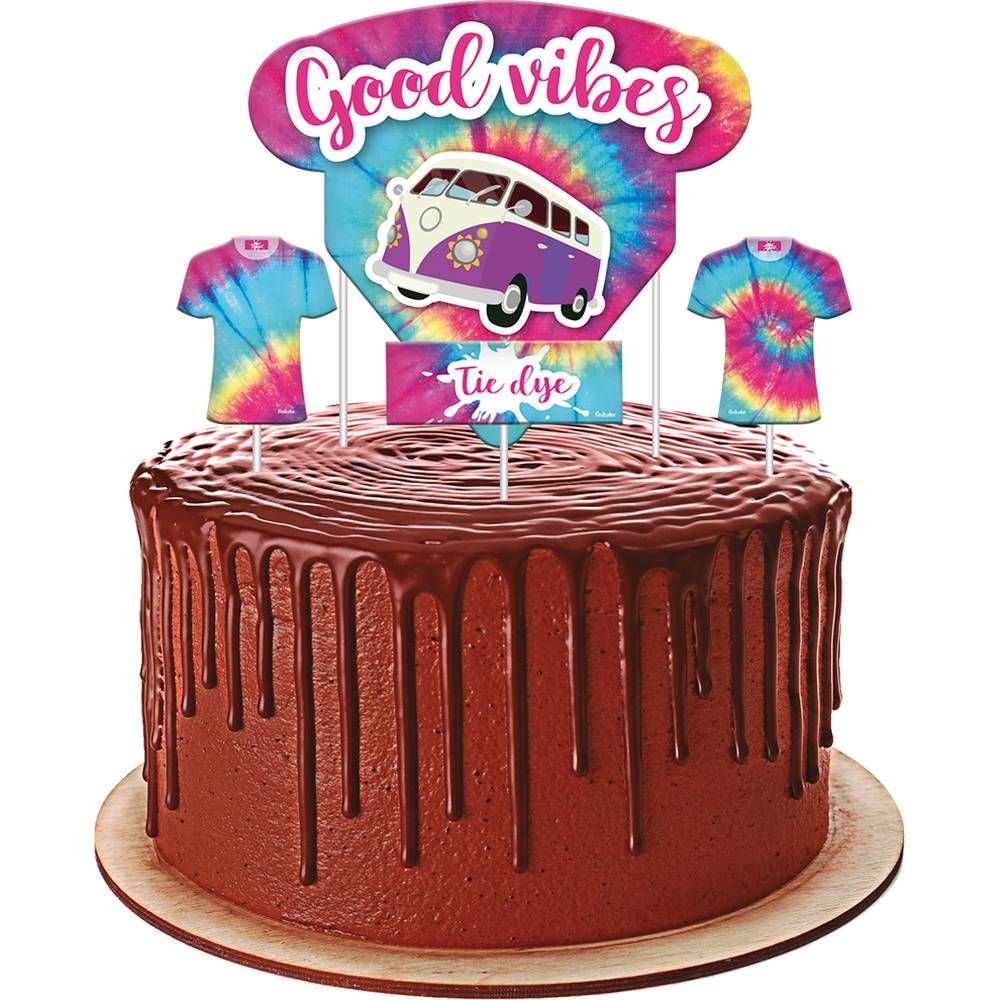 Agora ficou ainda mais fácil transformar qualquer bolo em uma verdadeira obra de arte com o topper para bolo Tie Dye da Festcolor. Garanta já o seu e surpreenda a todos com uma decoração única e cheia de estilo.