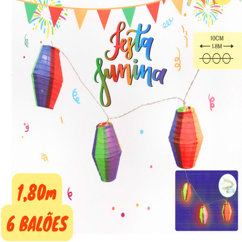 Utilize o Varal de LED Balão Junino para decorar a entrada da sua festa junina, criando um espaço acolhedor para receber os convidados;