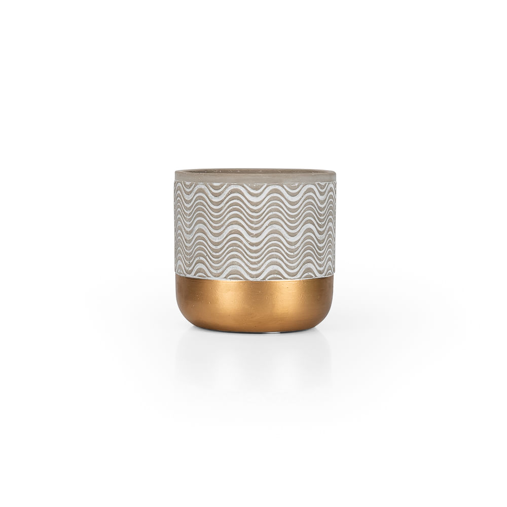 Compre Vaso Cimento Gold Ondas - P para a Decoração da Festa, Decoração de casa, Decoração de escritório e até mesmo Decoração de Jardim, pois elas se encaixam tanto em cômodos das áreas internas quanto ambientes externos.