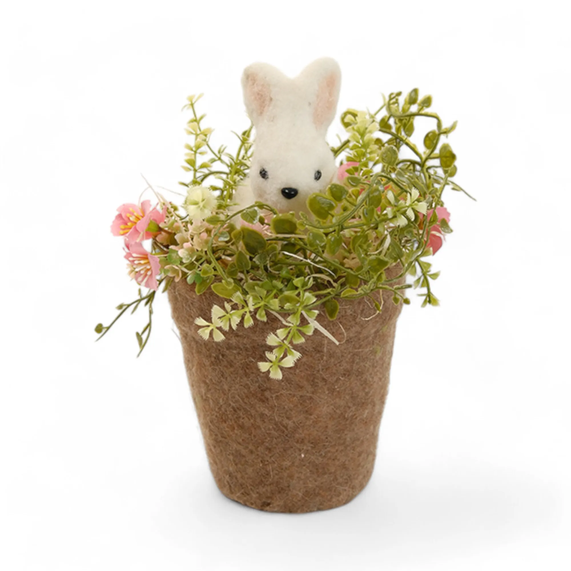 Vaso Decorativo com Coelho Flores Verde Fondant 23x16cm - 2 Un