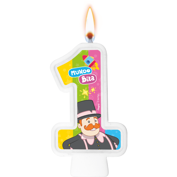 Surpreenda seus convidados com a Vela Festa Mundo Bita Número 1, com altura de 8,5cm e comprimento de 2,5cm. Inclui 1 unidade por pacote, ideal para comemorar o aniversário dos pequenos em grande estilo.