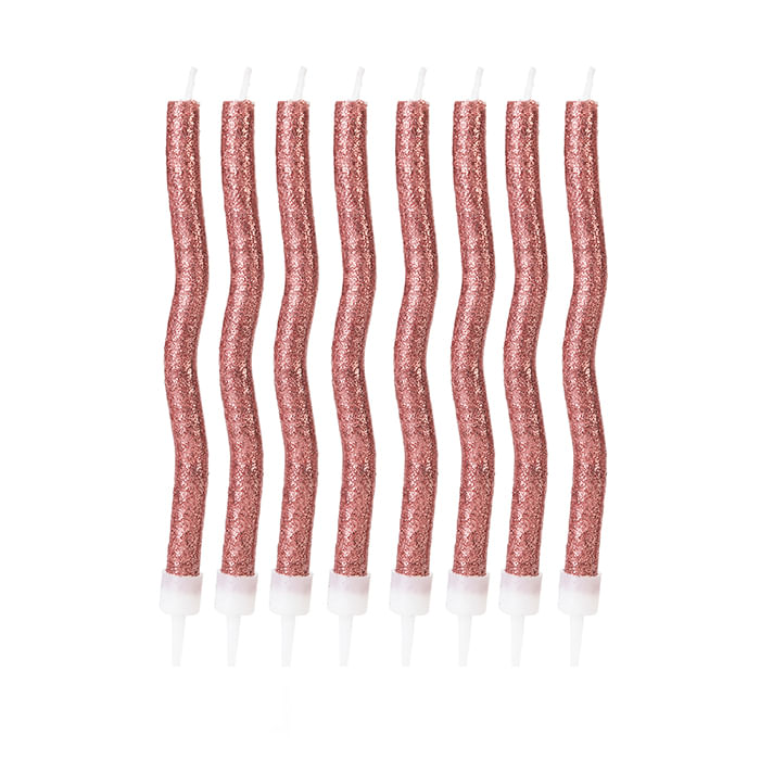 A Vela Palito Espiral Glitter Rosê Gold é perfeita para quem busca uma decoração diferenciada e luxuosa. São 8 unidades que possuem 15 cm de altura, ideais para serem utilizadas em bolos e sobremesas.