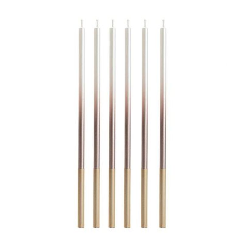 Nome do Produto: Vela Palito Gigante Degrade Perola com Rose Gold 15cm - V174 - 6 Un